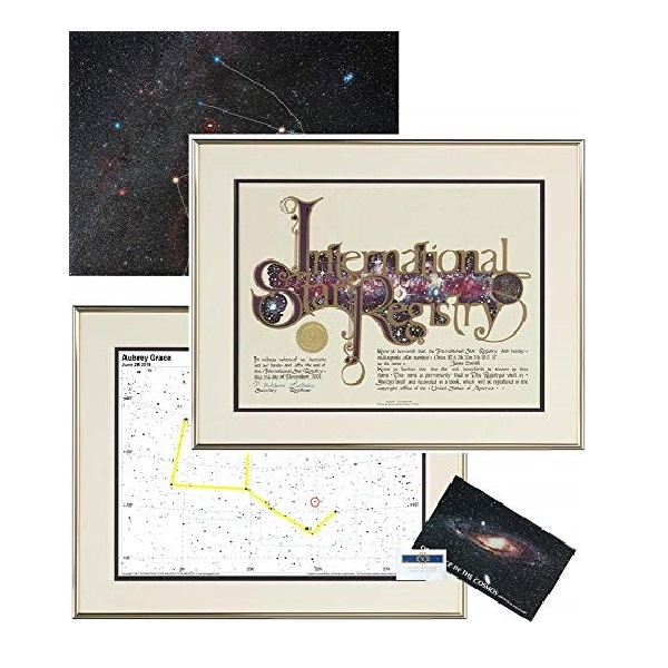 - This Gift Package includes 2 frames. Your 12″ X 16″ name a star certificate and your 12″ X 16″ personalized star chart will BOTH arrive professionally framed and ready to display.